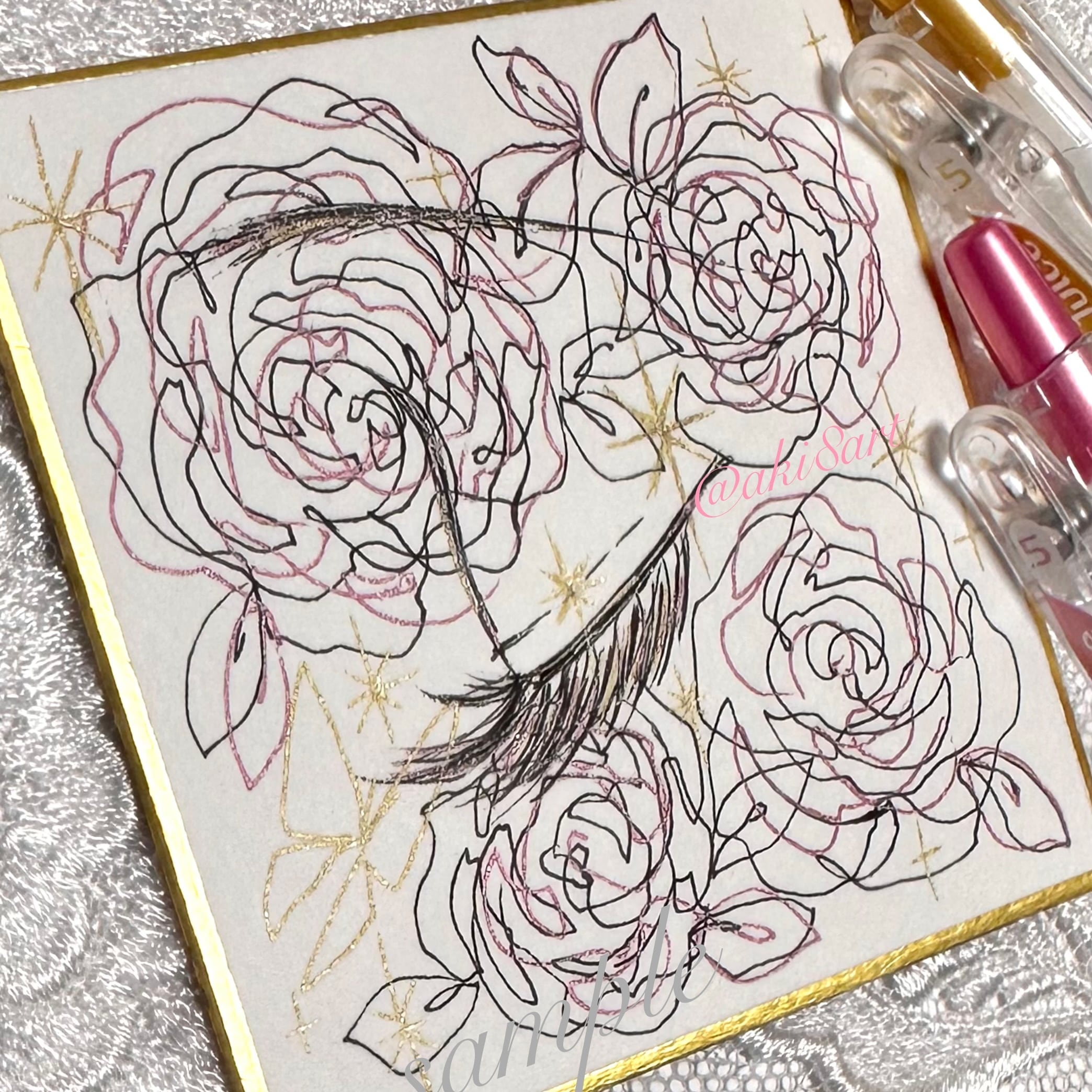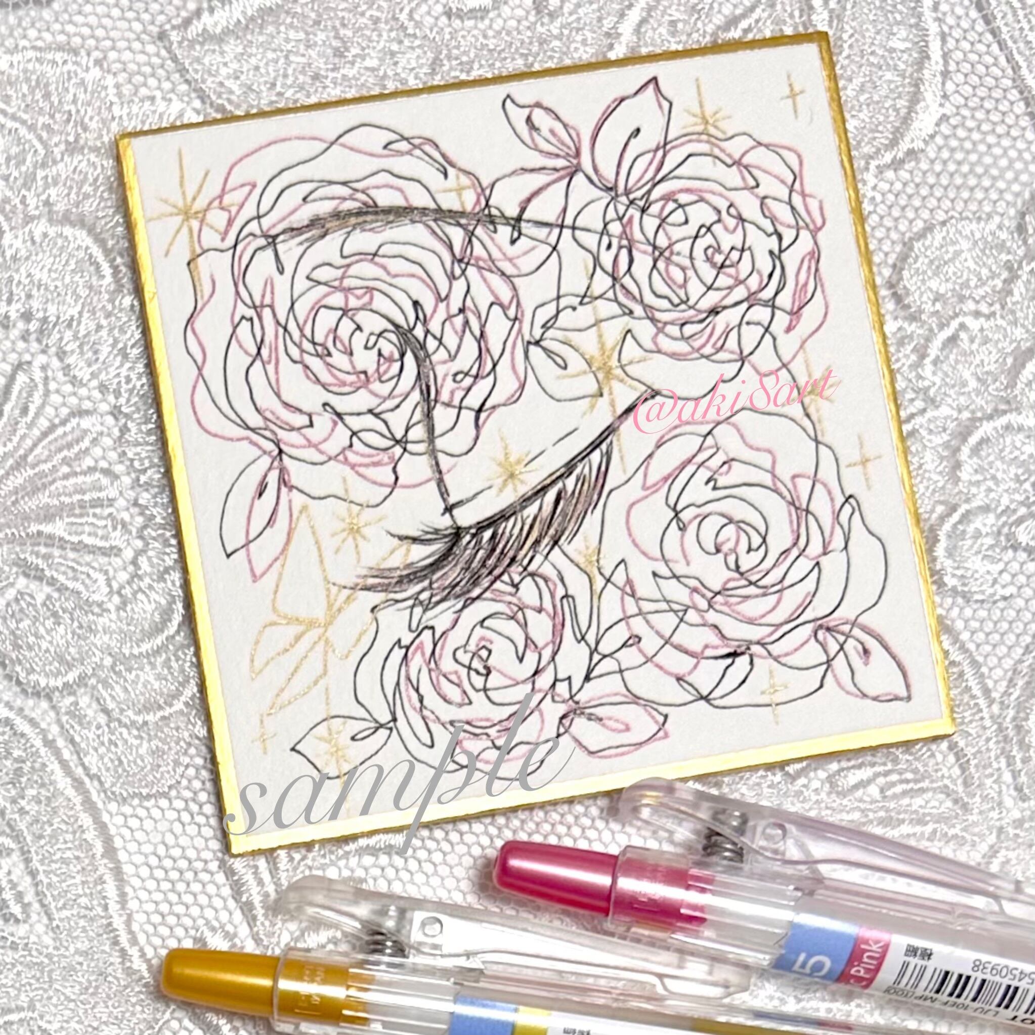 ちいさなドローイング|バラ【豆色紙】
