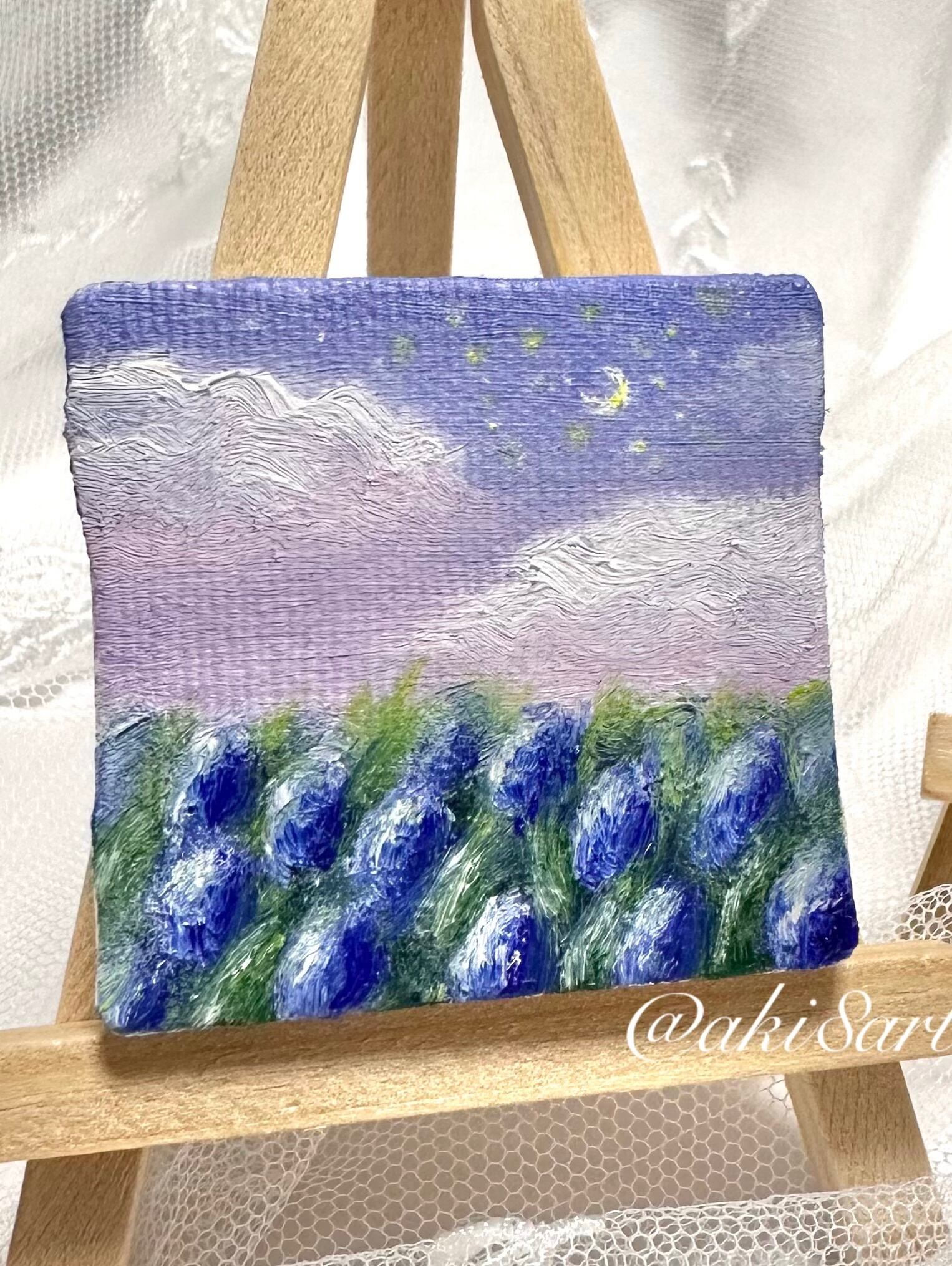 油彩|ユーリップ畑と夜空【ミニキャンバス】